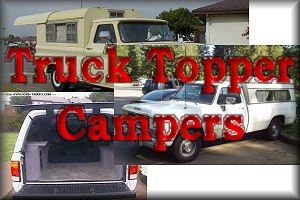 This site is dedicated to those who have or are interested in creating a truck topper camper or are fans of them. For those that have never heard of these before, allow me to explain. A Truck Topper Camper is a camper made from your basic pickup truck canopy. It becomes a Truck Topper Camper when those of us who are dedicated enough decide that sleeping in a tent is not as comfortable as we'd like and either cannot afford, cannot carry, or cannot store a full-sized slide-in truck camper. The transformation can be found in many differnet degrees, from just adding some carpeting and a few small cabinets to the back, to transforming it into a portable retreat in the woods.