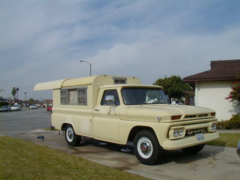 Frank's combo was a 1965 GMC 3/4 Ton V6 with the 1965 Downey Pullman Deluxe Slide Roof on the back.